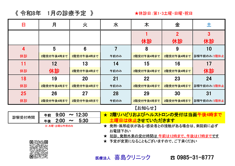 【診療時間】 午前 9:00~13:00(受付…12:30まで)